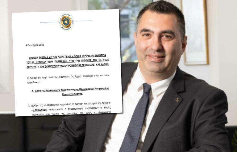 Όσο για τη φύση των τεσσάρων περιπτώσεων για τις οποίες ελέγχεται για κατάχρηση εξουσίας ο κ. Παρμακλής, αυτές προέκυψαν μετά από καταγγελία του Παύλου Νικολάου, ο οποίος την επίμαχη περίοδο ήταν ο προϊστάμενος των Οικονομικών Υπηρεσιών του Συμβουλίου Υδατοπρομήθειας Λευκωσίας.