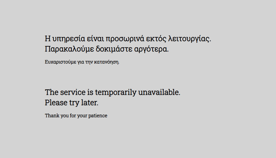 Ακόμα, ιστοσελίδες όπως «Ariadni» ή «Taxisnet» δεν είναι προσβάσιμες ούτε στο κοινό και το πιο κάτω μήνυμα εμφανίζεται στις οθόνες τους.
