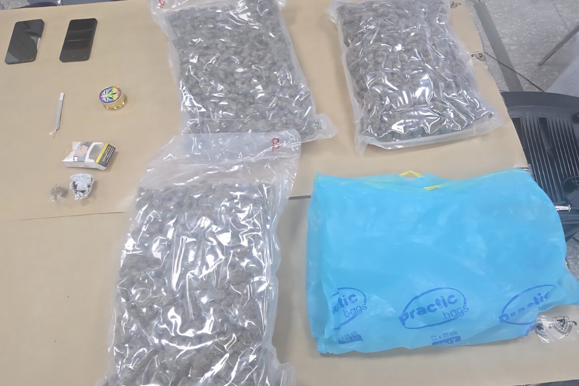 Τα μέλη της Αστυνομίας ανέκοψαν το όχημα του 35χρονου όπου εντοπίστηκε το νάιλον σακούλι που είχε τοποθετήσει προηγουμένως ο 26χρονος, το οποίο από έλεγχο που ακολούθησε, διαπιστώθηκε ότι περιείχε ποσότητα κάνναβης συνολικού βάρους 3 κιλών και 390 γραμμαρίων περίπου. Ο 35χρονος συνελήφθη για αυτόφωρο αδίκημα ενώ σε σωματική έρευνα που υποβλήθηκε, εντοπίστηκε στην κατοχή του ένας σπαστήρας εντός του οποίου υπήρχε ξηρή φυτική ύλη κάνναβης βάρους ενός γραμμαρίου, δύο κινητά τηλέφωνα ενώ εντός του αυτοκινήτου εντοπίστηκε επίσης ένα χειροποίητο τσιγάρο το οποίο περιείχε κάνναβη.
