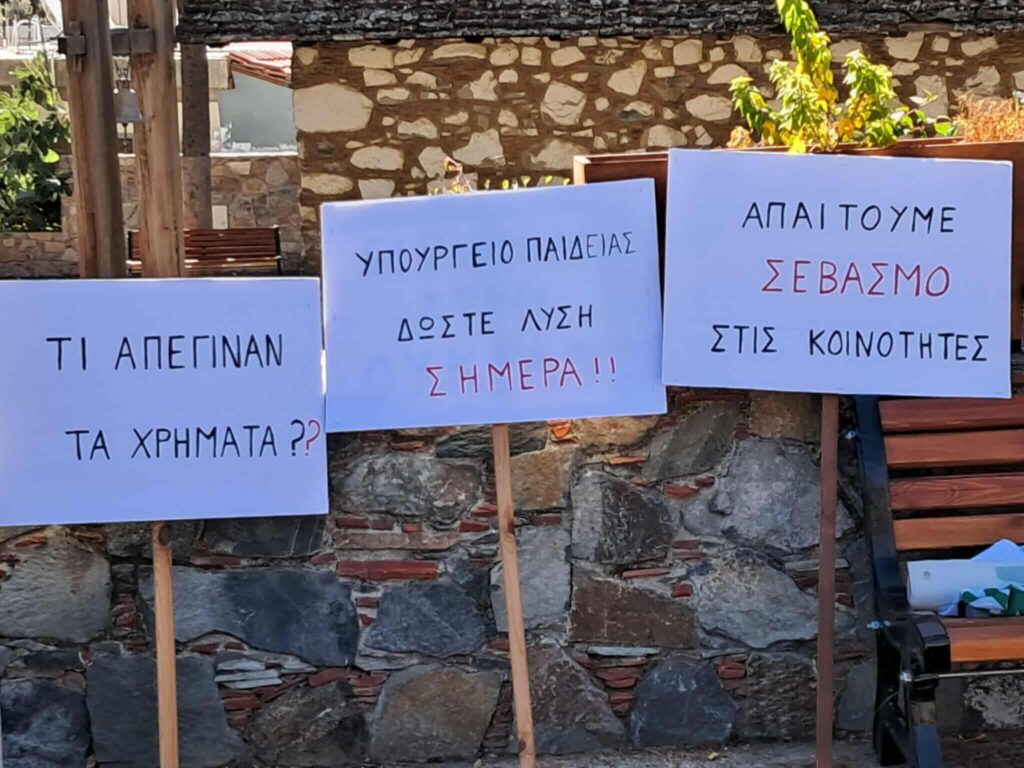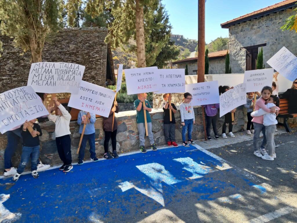 Από τις 10:00 το πρωί μέχρι το μεσημέρι, ο χώρος έξω από το σχολείο γέμισε με παιδικές φωνές και γονείς που εξέφρασαν την αγανάκτησή τους για την όλη κατάσταση. Τα παιδιά κρατούσαν πλακάτ με συνθήματα όπως «Διαφάνεια και λογοδοσία τώρα», «Θέλουμε νηπιαγωγείο, όχι εργοτάξιο» και «Τι απέγιναν τα χρήματα;». Δίπλα τους, οι γονείς απαιτούσαν απαντήσεις.