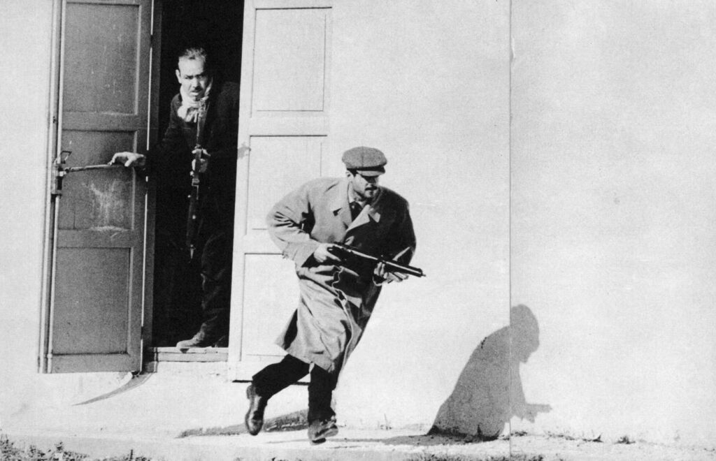 Στην πρώτη φωτογραφία, όπως εξηγεί, φαίνεται ένας Τούρκος ένοπλος σε τουρκοκυπριακή συνοικία της Λεμεσού. «Πήγα στα γραφεία της Observer και ο αρχισυντάκτης μού είπε: “Θα σκεφτόσουν να πας να καλύψεις τις ταραχές στην Κύπρο;” Ένιωσα να αιωρούμαι. Την πρώτη μου μέρα στη Λεμεσό, τράβηξα αυτή τη φωτογραφία, δίπλα από έναν κινηματογράφο. Μοιάζει με καρέ από ταινία του Χόλιγουντ – ο άνδρας είναι υπερβολικά καλοντυμένος. Το βράδυ, όταν σταμάτησαν οι μάχες, δεν είχα πού να μείνω, και οι Τούρκοι αστυνομικοί μού είπαν ότι μπορούσα να κοιμηθώ σ’ ένα κελί. Αυτό ήταν το βάπτισμά μου στον πόλεμο», αναφέρει.