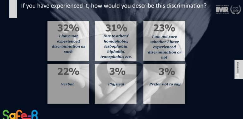 Από αυτούς που απάντησε θετικά, 31% απέδωσε τις διακρίσεις που βίωσε σε ομοφοβία, τρανσφοβία ή παρόμοιες προκαταλήψεις. 22% αναφέρθηκε σε λεκτικές διακρίσεις.
