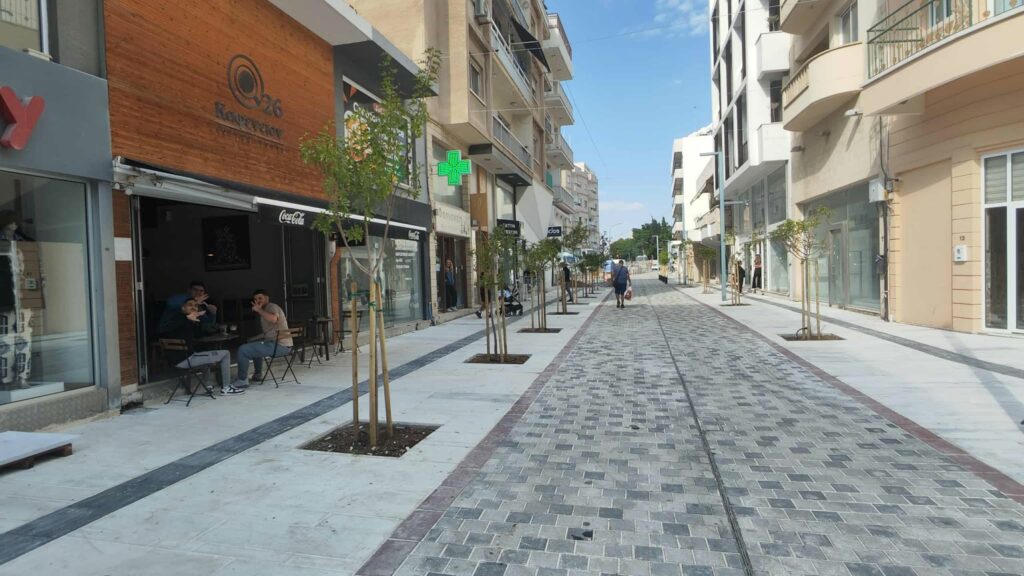 To philenews βρέθηκε επί τόπου και κατέγραψε εικόνες και βίντεο από την ριζικά αναδιαμορφωμένη εμπορική οδό, που δεν θυμίζει σε τίποτα την κατάσταση που επικρατούσε πριν την έναρξη των έργων.