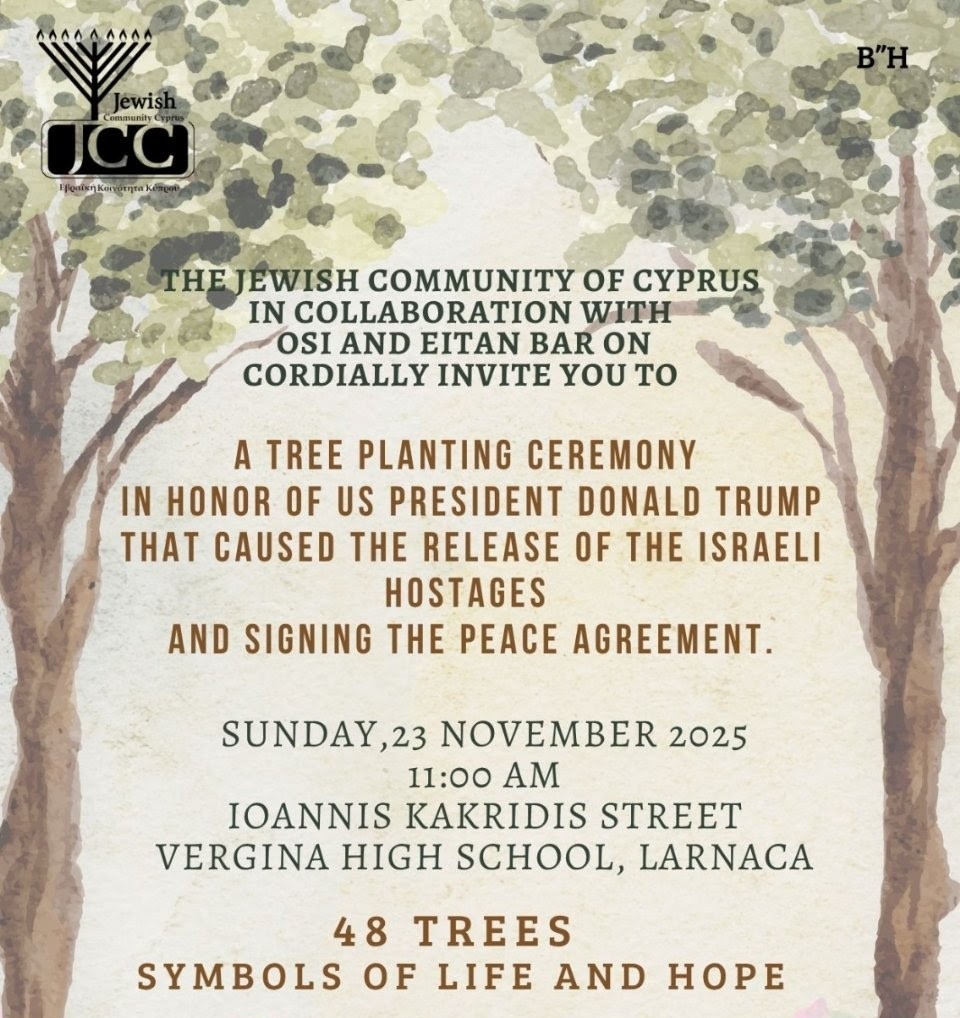Σύμφωνα με ανακοίνωση από την Εβραϊκή Κοινότητα Κύπρου , η φύτευση των 48 δέντρων –που περιγράφονται ως «σύμβολα ζωής και ελπίδας»– είναι προγραμματισμένη για την Κυριακή, 23 Νοεμβρίου 2025, στις 11:00 π.μ., στην οδό Ιωάννη Κακρίδη, κοντά στο Λύκειο Βεργίνας.