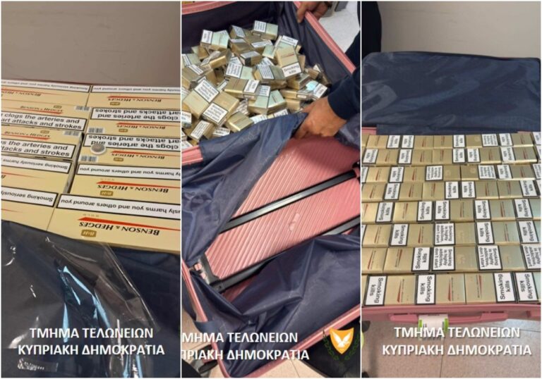 Μεγάλες ποσότητες καπνικών προϊόντων οι οποίες δεν έφεραν τη σήμανση για το βλαβερό του καπνίσματος στην ελληνική και τουρκική γλώσσα, αλλά ούτε και το χαρακτηριστικό ασφαλείας και το μοναδικό κωδικό ιχνηλασιμότητας – ενδείξεις ότι ήταν αδασμοφορολόγητα – εντόπισε το Τμήμα Τελωνείων στο Αεροδρόμιο Πάφου – μετά από αξιολόγηση πληροφοριών – στις αποσκευές δύο επιβάτιδων με Βρετανική υπηκοότητα που θα ταξίδευαν για Ηνωμένο Βασίλειο.