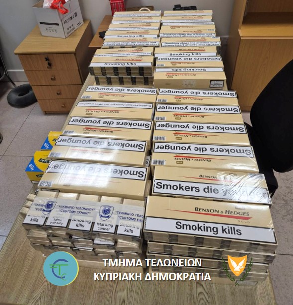 Στις 21/11/2025 λειτουργοί του Τμήματος Τελωνείων στο Αεροδρόμιο Πάφου, μετά από αξιολόγηση πληροφοριών, εντόπισαν επιβάτη με Βρετανική υπηκοότητα πριν την αναχώρηση του με προορισμό το Ηνωμένο Βασίλειο, με τις αποσκευές του να περιέχουν μεγάλες ποσότητες καπνικών προϊόντων, τα οποία δεν έφεραν τη σήμανση για το βλαβερό του καπνίσματος στην ελληνική και τουρκική γλώσσα, αλλά ούτε και το χαρακτηριστικό ασφαλείας και το μοναδικό κωδικό ιχνηλασιμότητας, ενδείξεις ότι ήταν αδασμοφορολόγητα.