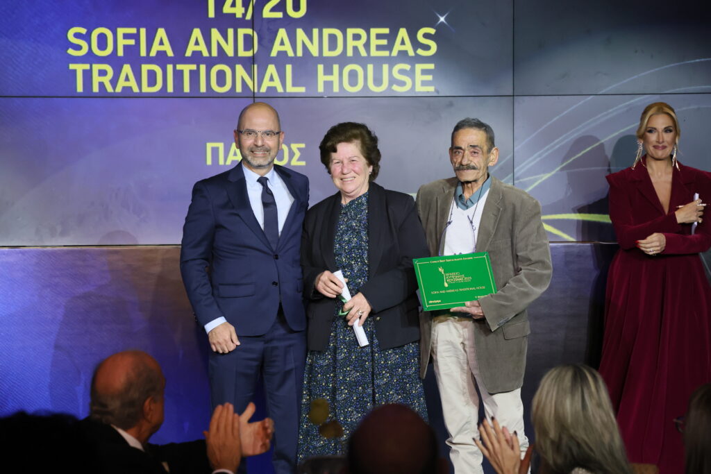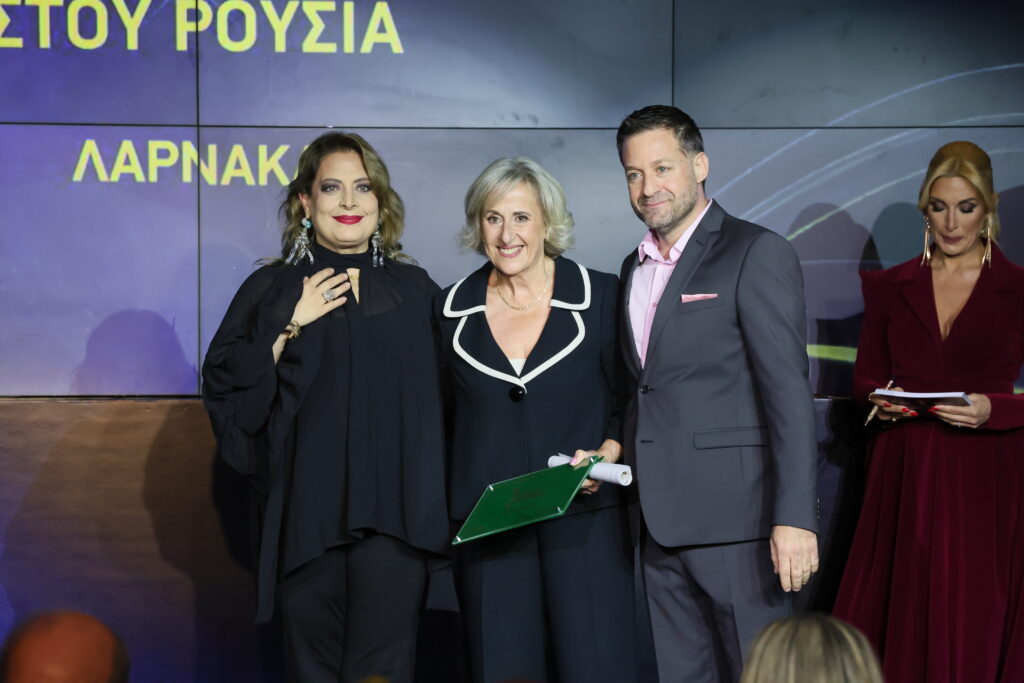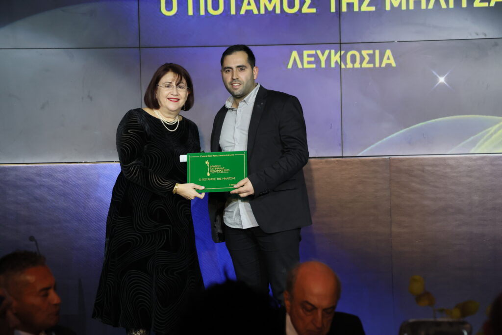 Η πρόεδρος του Δ.Σ. της Cyta, Μαρία Τσιάκκα, βραβεύει το εστιατόριο Ποταμός της Μηλίτσας στην κατηγορία Κυπριακή Κουζίνα. Το βραβείο παρέλαβε ο Σωτήρης Γιασεμή.