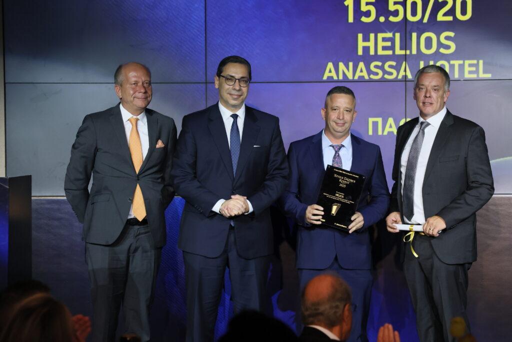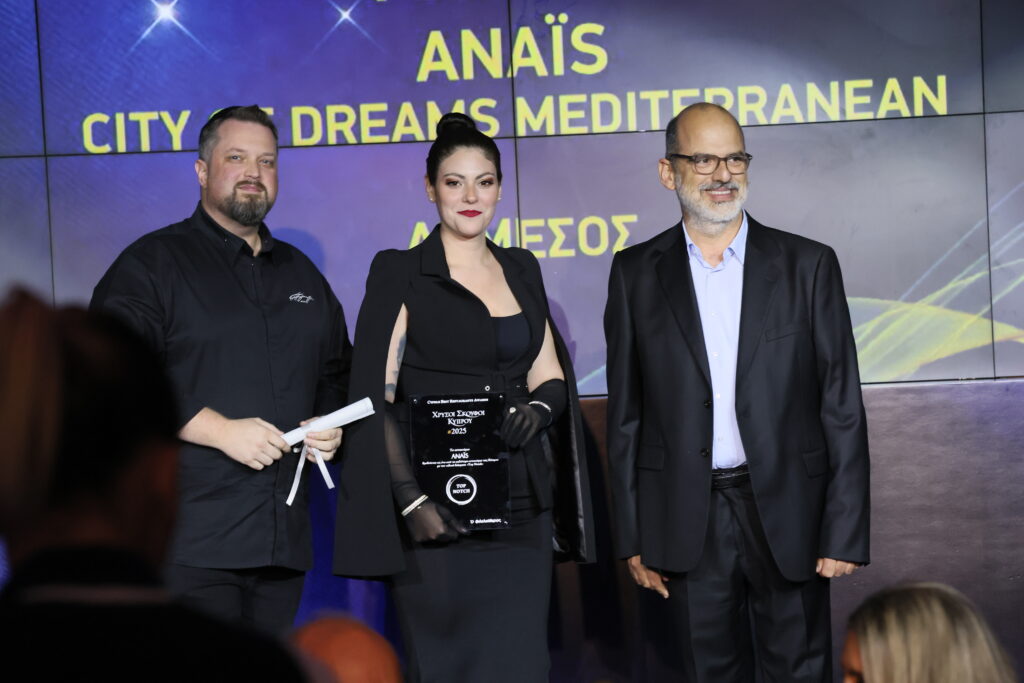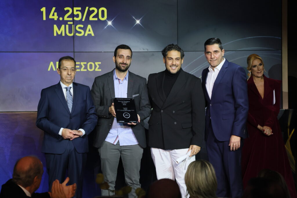 Ο πρέσβης της Ελλάδας στην Κύπρο, Κωνσταντίνος Κόλλιας, βραβεύει το εστιατόριο μūsa στην κατηγορία Top Notch. Το βραβείο παρέλεβαν οι Αθηναγόρας Κωστάκος, Γιώργος Ιωάννου και Αλέξανδρος Αθανασιάδης.