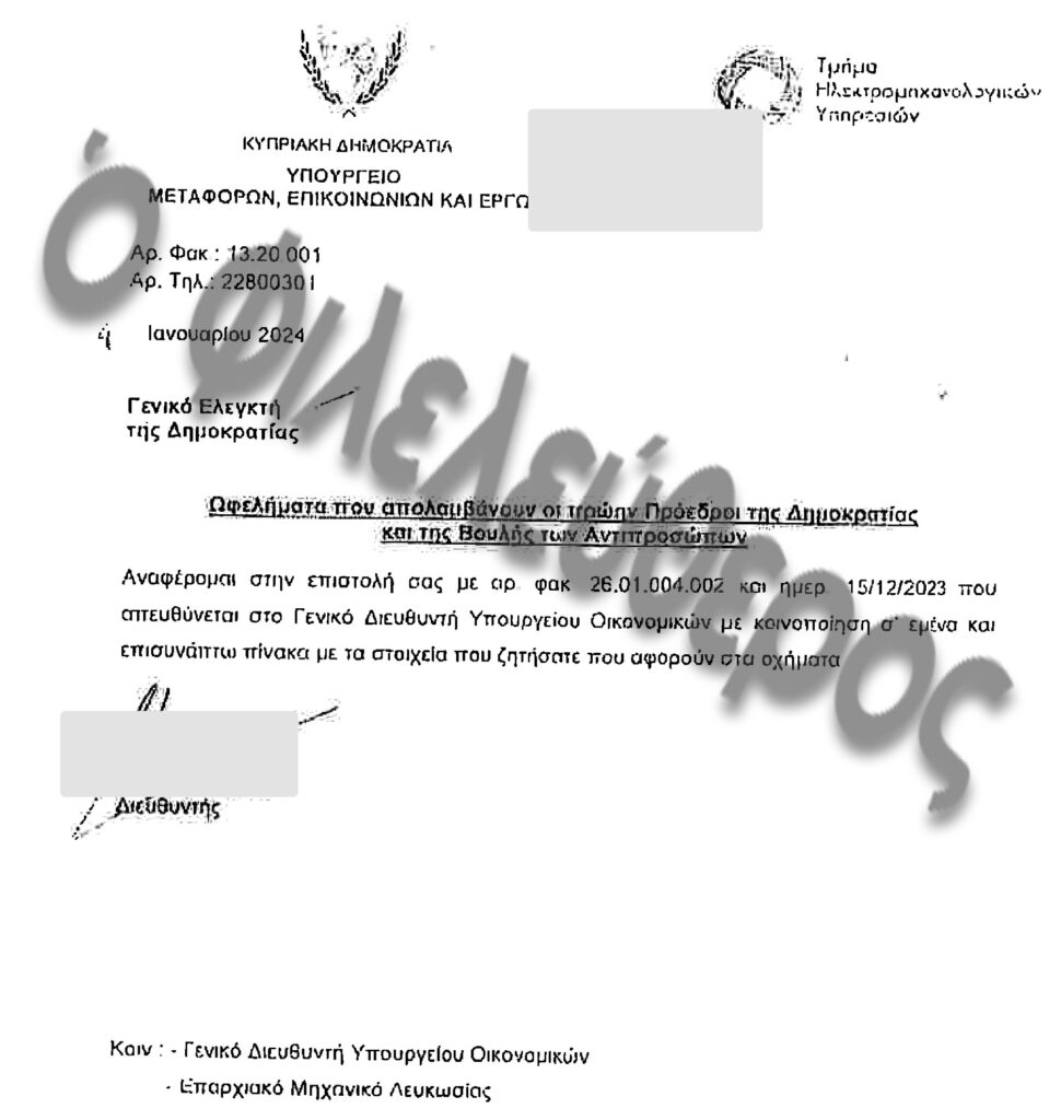 Ποια, όμως, είναι η εικόνα που υπάρχει σε σχέση με τα ωφελήματα πρώην και νυν αξιωματούχων; Σύμφωνα με έγγραφα που κατατέθηκαν στην Βουλή τον Ιανουάριο του 2024 από τα Υπουργεία Οικονομικών και Μεταφορών, αντίστοιχα, εντός της προηγούμενης 20ετίας παραχωρήθηκαν περί τα €2 εκατ. μόνο για να έχουν υπηρεσίες γραμματέως και να διατηρούν υπηρεσιακά οχήματα (μαζί με τα έξοδα για τα καύσιμα και τη συντήρησή τους).