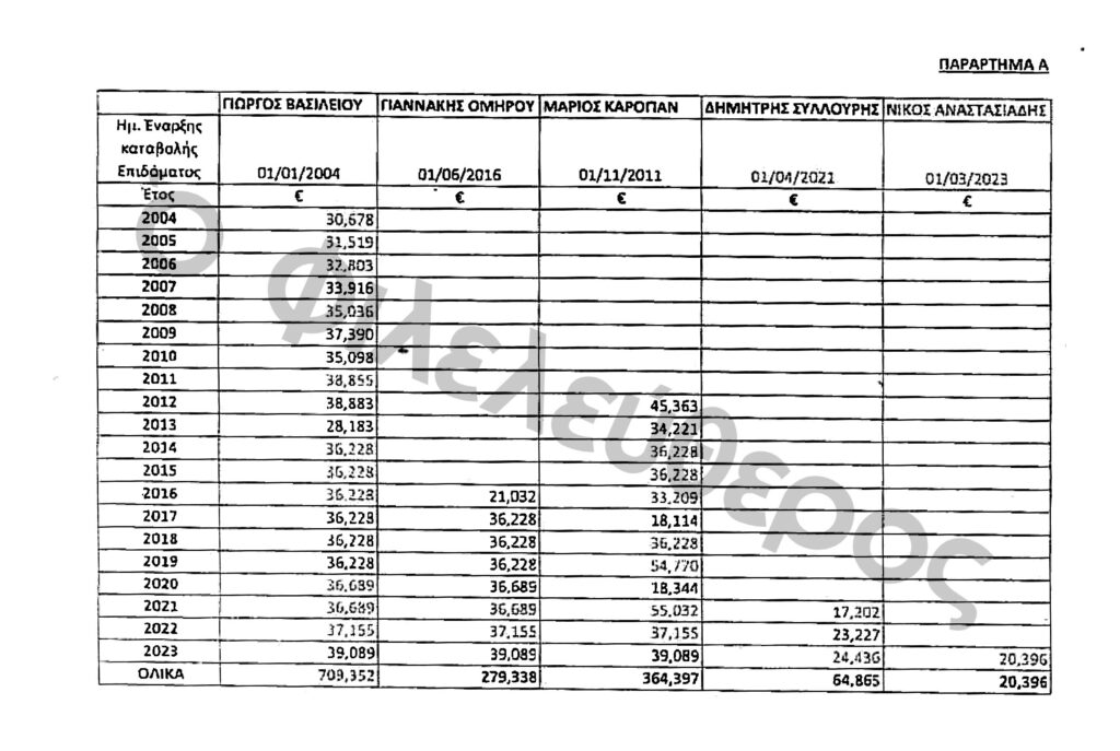 Αναλυτικά τα ποσά που έλαβαν μέσω σχετικής κατάστασης του Υπουργείου Οικονομικών που καταρτίστηκε τον Ιανουάριο του 2024: