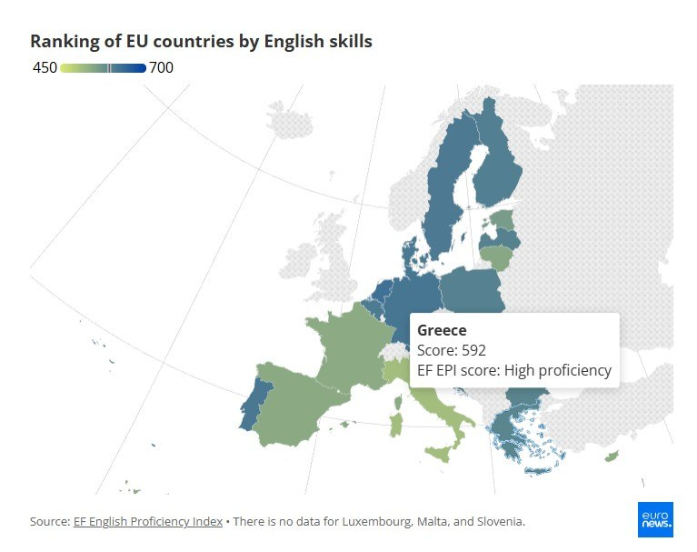 Ο Δείκτης Αγγλικής Γλωσσικής Ικανότητας EF 2025 βασίζεται στα αποτελέσματα των εξετάσεων 2,2 εκατομμυρίων ενηλίκων σε 123 χώρες και περιοχές.