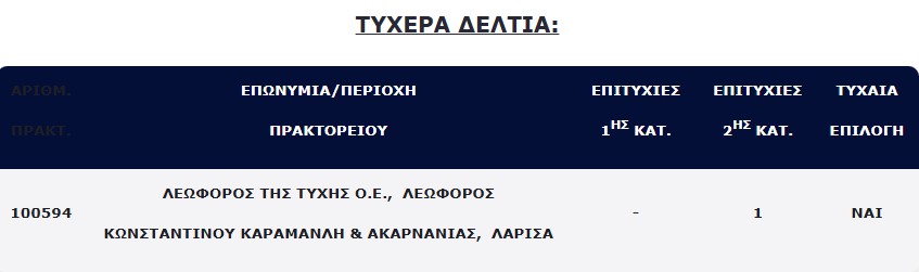 Ένα τυχερό δελτίο βρέθηκε στη 2η κατηγορία, το οποίο κερδίζει το ποσό των €100.000.