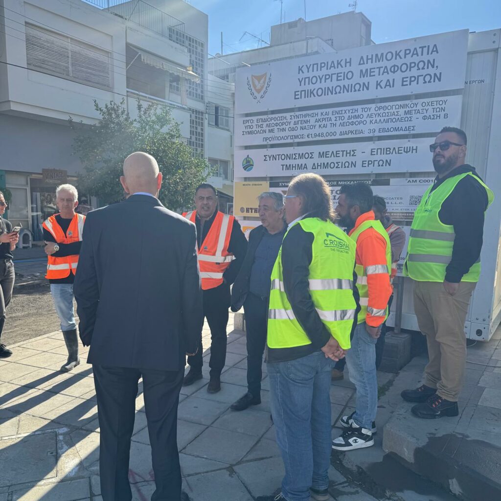 Το έργο επιδιόρθωσης, συντήρησης και ενίσχυσης του ορθογωνικού οχετού υπό της Λεωφόρου Διγενή Ακρίτα, εντός των ορίων του Δήμου Λευκωσίας, επισκέφθηκε χθες, Τρίτη 16 Δεκεμβρίου 2025, ο Υπουργός Μεταφορών, Επικοινωνιών και Έργων κ. Αλέξης Βαφεάδης.