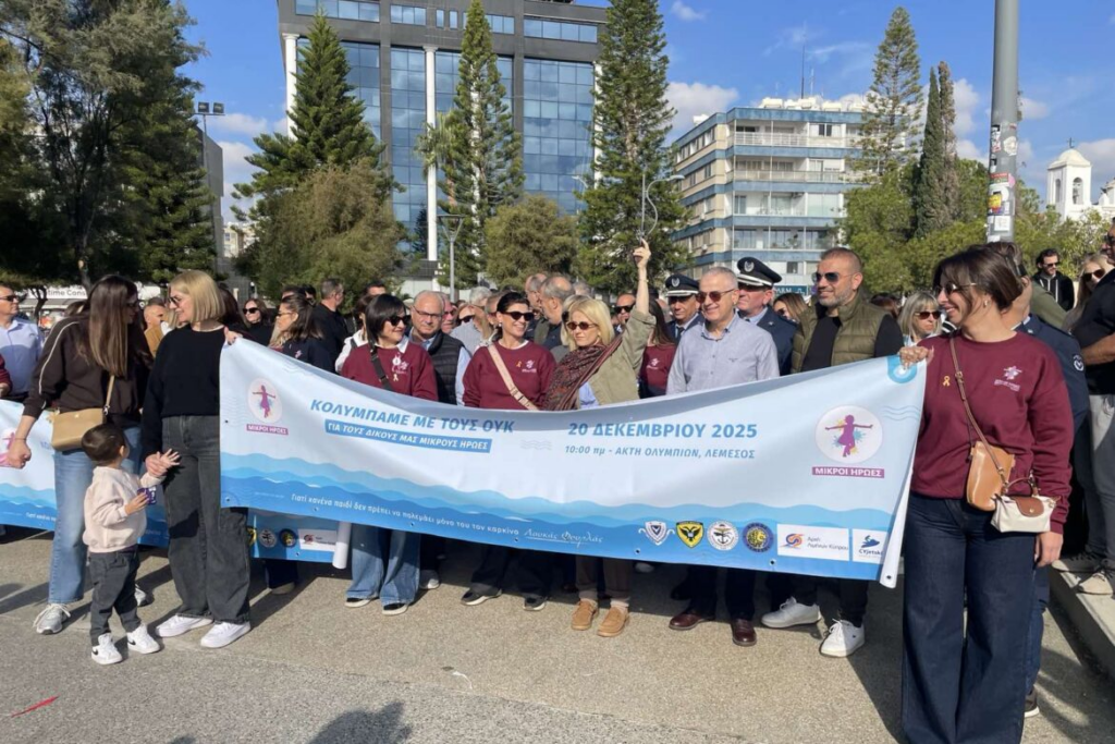 Η εκδήλωση «Κολυμπάμε με τους ΟΥΚ για τους Μικρούς μας Ήρωες» πραγματοποιήθηκε με αφετηρία την Ακτή Ολυμπίων και τερματισμό την αποβάθρα του παλιού λιμανιού Λεμεσού. Συνοδοιπόροι σε αυτή την προσπάθεια ήταν και φέτος η Αστυνομία Κύπρου, η Εθνική Φρουρά και η Cyjetski.