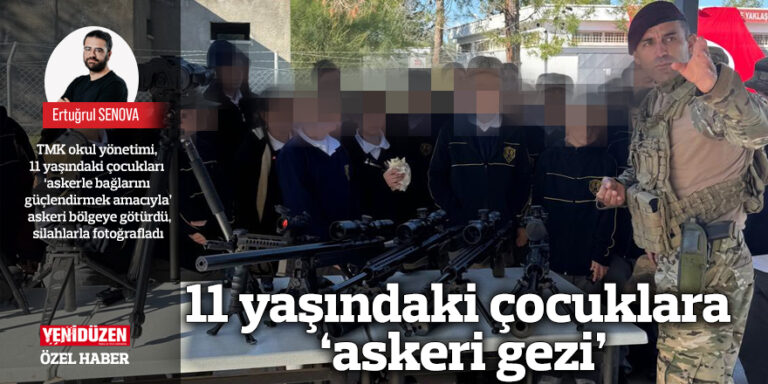 Αντιδράσεις στα κατεχόμενα προκάλεσε η επίσκεψη 11χρονων μαθητών του «τουρκικού κολεγίου μααρίφ» (TMK) σε στρατιωτική μονάδα στην κατεχόμενη Λευκωσία. Σύμφωνα με αναρτήσεις στους επίσημους λογαριασμούς του σχολείου, οι οποίες αποσύρθηκαν στη συνέχεια ύστερα από αντιδράσεις που προκλήθηκαν, οι μαθητές της 6ης τάξης φωτογραφήθηκαν κρατώντας όπλα και ποζάροντας μπροστά από στρατιωτικό εξοπλισμό, με δεδηλωμένο στόχο την «ενίσχυση των δεσμών με τον στρατό».