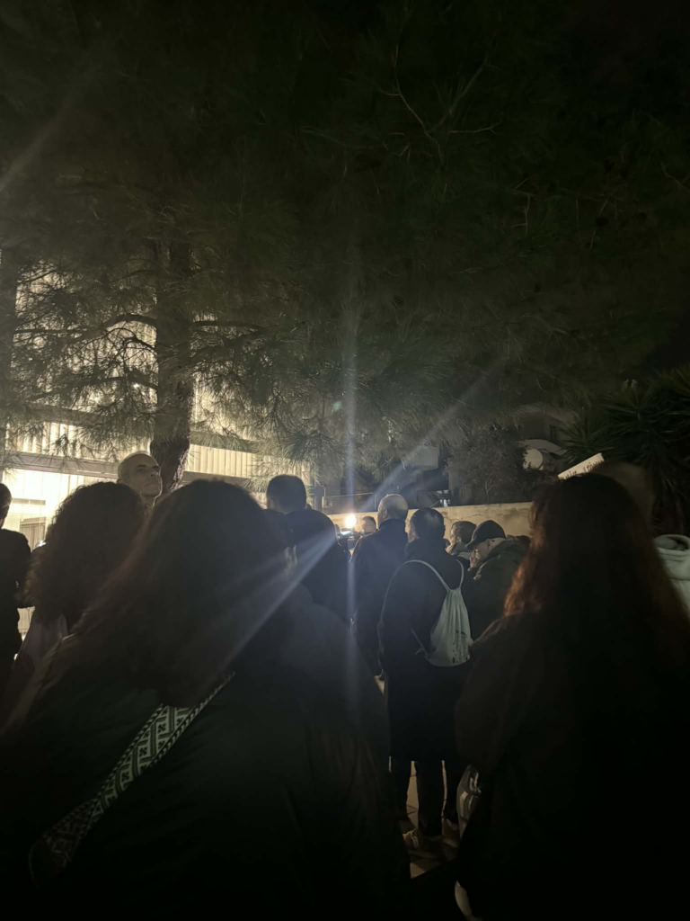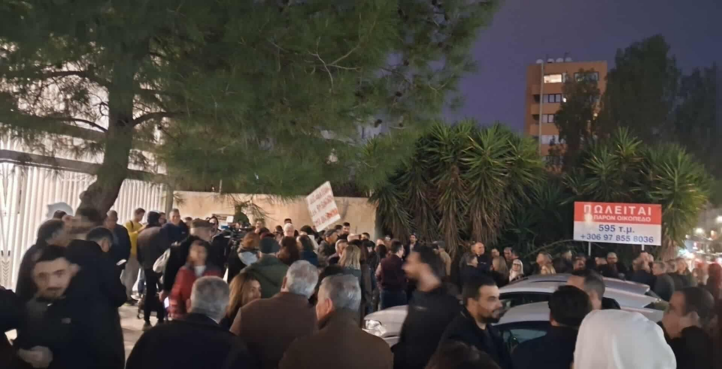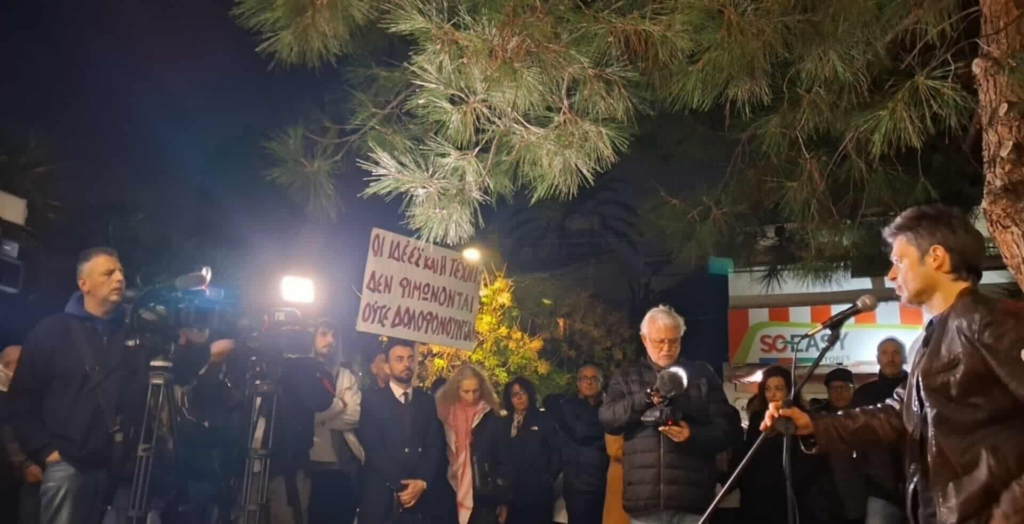 Έξω από το υφυπουργείο βρέθηκε και ο ίδιος ο εικαστικός, ο οποίος απεύθυνε και ομιλία.