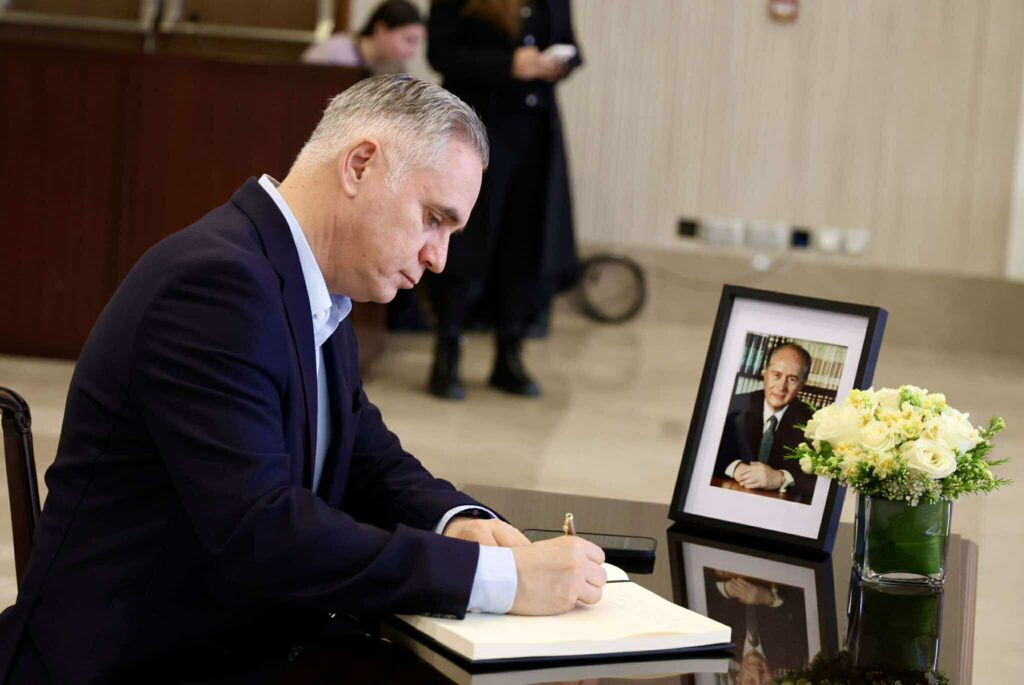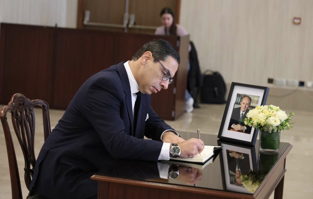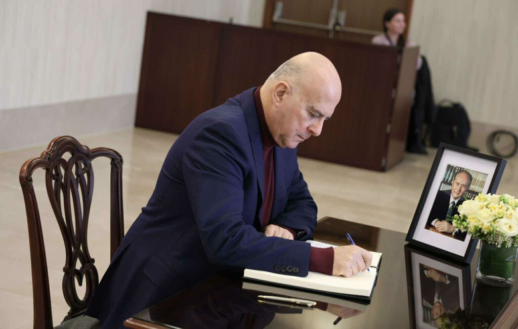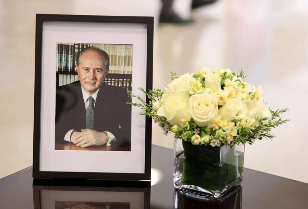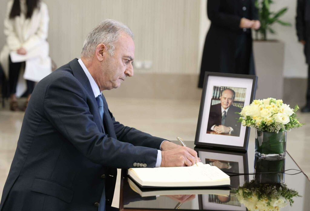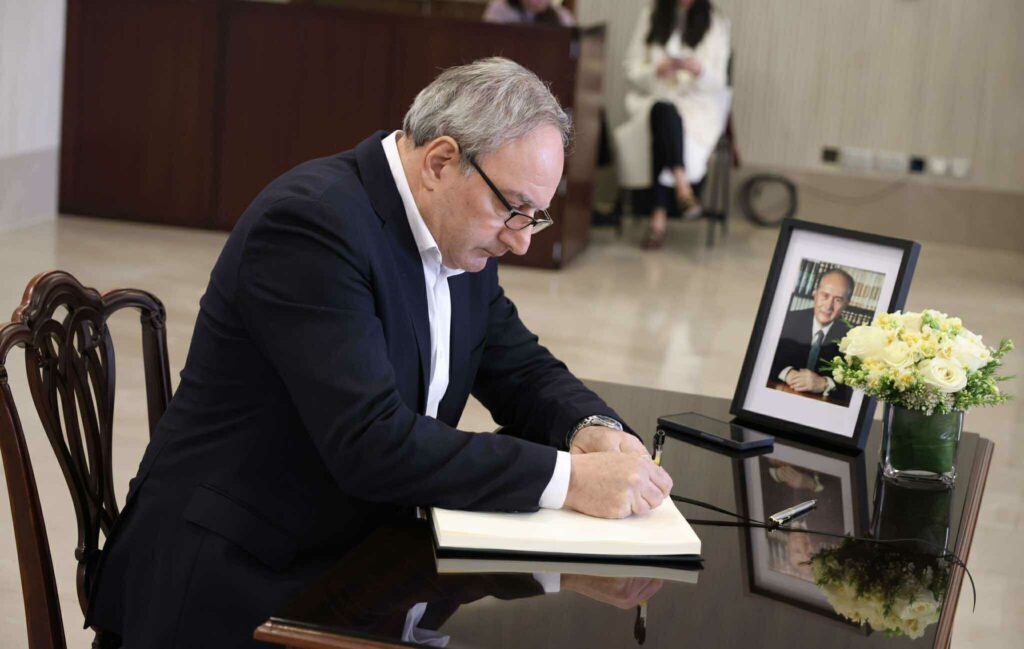 Με ζωγραφισμένη τη θλίψη για την απώλεια του οραματιστή πρώην Προέδρου, ο οποίος έφυγε από τη ζωή στην αγκαλιά της οικογένειάς του σε ηλικία 94 ετών, ο Πρόεδρος Χριστοδουλίδης πλησίασε το βιβλίο και το υπέγραψε.