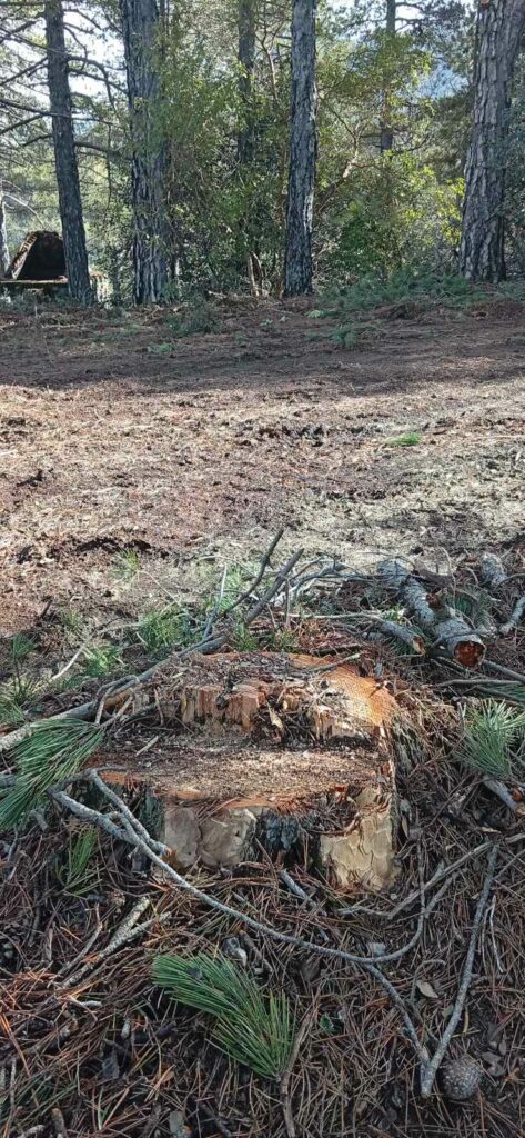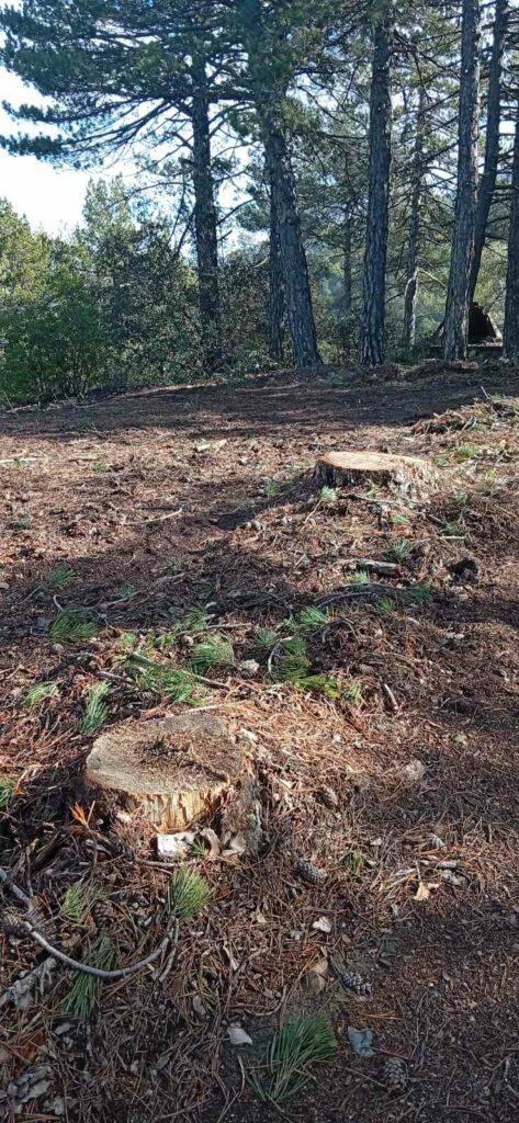 Παρόλο που η επίσημη άδεια προέβλεπε την αραίωση μόλις πέντε πεύκων για γεωργικούς σκοπούς, η αυτοψία λειτουργών της Υπηρεσίας Θήρας και Πανίδας (ΥΘΠ) χθες αποκάλυψε μια διαφορετική εικόνα, καθώς ο αριθμός των κομμένων δέντρων είναι μεγαλύτερος από αυτόν που αναγράφεται στην άδεια που εξέδωσε το Τμήμα Δασών.