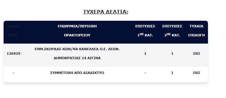 Επίσης, ένα τυχερό δελτίο βρέθηκε στη 2η κατηγορία (5), το οποίο κερδίζει το ποσό των €100.000,00.