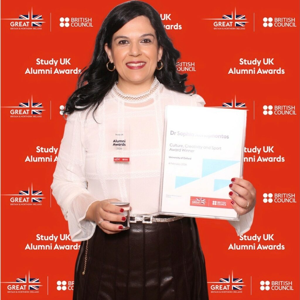 Με το Βραβείο Study UK Alumni Award, στην κατηγορία «Πολιτισμός, Δημιουργικότητα και Αθλητισμός» για το 2026 τιμήθηκε στην Ελλάδα η διακεκριμένη Κύπρια ερευνήτρια Σοφία Ξενοφώντος.