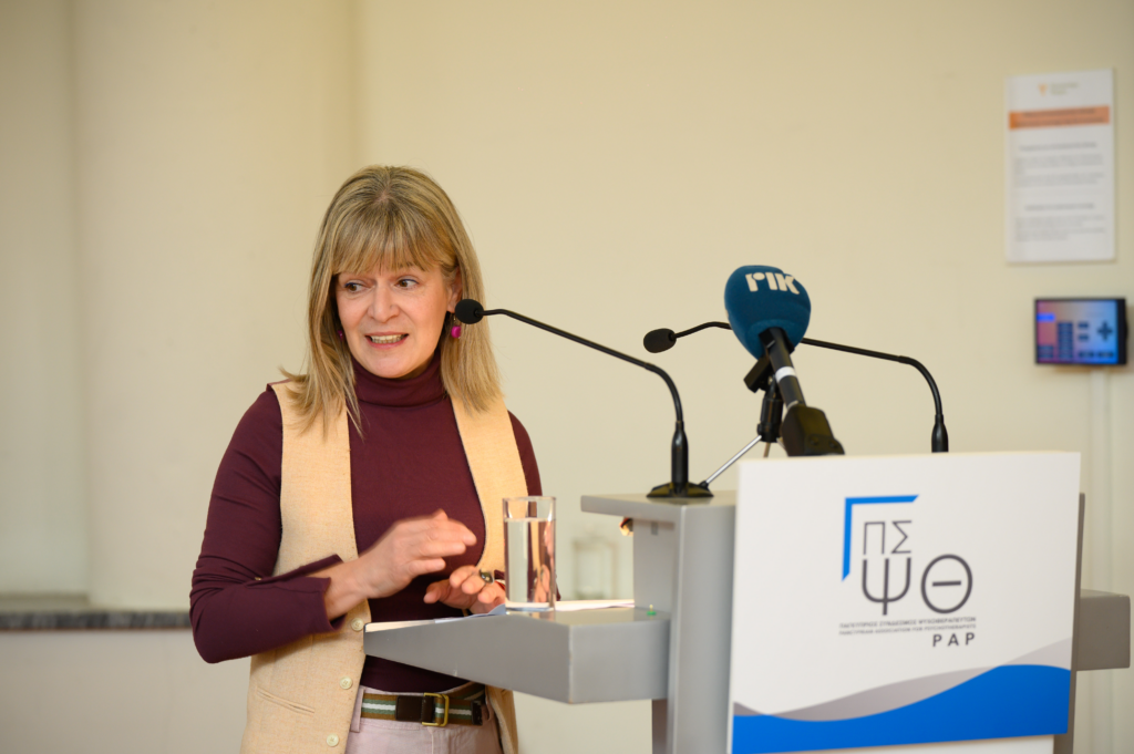 Τα στοιχεία αυτά μετέφερε στον «Φ» η συστημική οικογενειακή ψυχοθεραπεύτρια Μαρία Λεωνίδου με αφορμή την ετήσια Γενική Συνέλευση του ΠΣΨΘ που πραγματοποιήθηκε στις 3 Φεβρουαρίου 2026 στο Πανεπιστήμιο Κύπρου στη Λευκωσίακαι που αποτέλεσε μιαευκαιρία ουσιαστικού διαλόγου για ζητήματα που αφορούν τη ψυχική υγεία, την κατοχύρωση του επαγγέλματος του ψυχοθεραπευτή και τον ρόλο της ψυχοθεραπείας στη σύγχρονη κοινωνία. Παρευρέθηκε ο Γενικός Εισαγγελέας Γιώργος Σαββίδης ενώ σημαντικές παρεμβάσεις έκαναν εκτός από την πρόεδρο του ΠΣΨΘ Φωτεινή Ipsmiller Δημητρίου ο πρόεδρος της Επιτροπής Εποπτείας και Προστασίας των Δικαιωμάτων των Ψυχικά Ασθενών ψυχίατρος δρ Νίκος Νικολάου και η Επίτροπος Προστασίας των Δικαιωμάτων του Παιδιού Έλενα Περικλέους. Σημειώνουμε ότι επίκεντρο της ομιλίας της κυρίας Δημητρίου ήταν το αίτημα του Συνδέσμου προς την Πολιτεία «να θεσμοθετήσει και να προστατεύσει τον χώρο της ψυχοθεραπείας με σαφή και δεσμευτικά πλαίσια εκπαίδευσης, εποπτείας και λογοδοσίας που να διασφαλίζουν την ασφάλεια ευάλωτων ανθρώπων που αναζητούν ψυχολογική στήριξη».