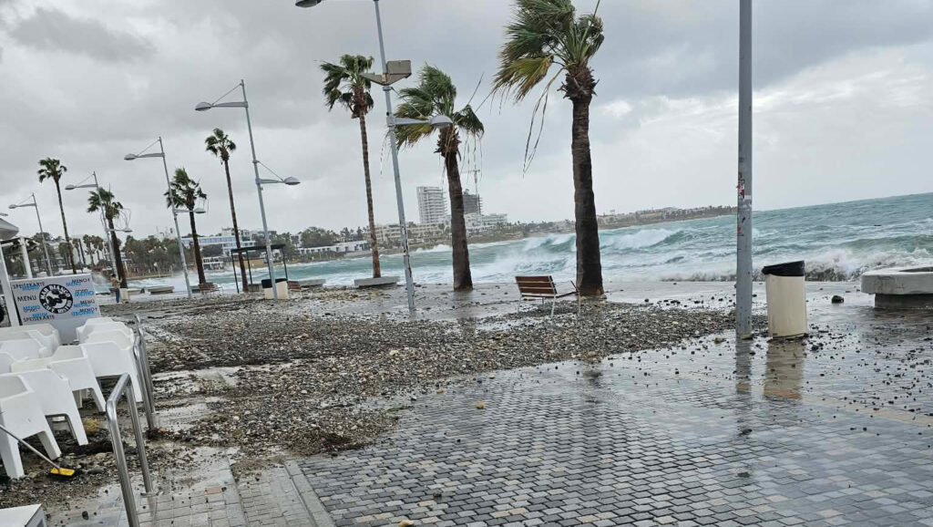 Για δεύτερη φορά σε διάστημα λίγων 24ωρων, ο μόλος της Κάτω Πάφου μετατρέπεται σε κρανίου τόπο λόγω των ακραίων καιρικών φαινομένων που επικρατούν από χθες βράδυ με τους θυελλώδεις ανέμους και την σφοδρή θαλασσοταραχή. Η θάλασσα μπήκε αυτό το πρωί κυριολεκτικά μέσα στα καταστήματα του μόλου, ενώ η παραλιακή λεωφόρος από τη συμβολή της λεωφόρου Αποστόλου Παύλου με την Ποσειδώνος μέχρι τα Δημοτικά Μπάνια, μετατράπηκε σε «χωματόδρομο», κατά την έκφραση διαμαρτυρόμενων επιχειρηματιών της περιοχής, με τις πέτρες, την άμμο και τα φύκια που ξέβρασε η θάλασσα να καλύπτει το οδόστρωμα όπως φαίνεται στις φωτογραφίες που δημοσιεύει το philenews.