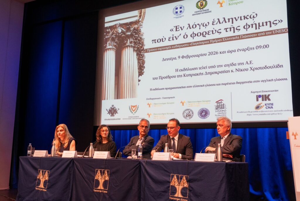 Η θέση της ελληνικής γλώσσας στο παγκόσμιο ιστορικό και πολιτισμικό τοπίο, σκιαγραφήθηκε με τον πιο δυνατό και κατανοητό για το πολυπληθές κοινό που ξεχείλισε την αίθουσα στην πρόσφατη εκδήλωση για τον πρώτο εορτασμό της Παγκόσμιας Ημέρας Ελληνικής Γλώσσας στο Πανεπιστήμιο Κύπρου, από τον καθηγητή και πρόεδρο του Τμήματος Κλασικών Σπουδών και Φιλοσοφίας, Γεώργιο Ξενή.