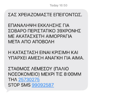 Σύμφωνα με νεότερη ενημέρωση από το Κέντρο Αίματος σήμερα το απόγευμα, υπάρχει ακόμα άμεση ανάγκη για αίμα και παρακαλείται το κοινό να μεταβεί μέχρι τις 8 το βράδυ για να συνεισφέρει.