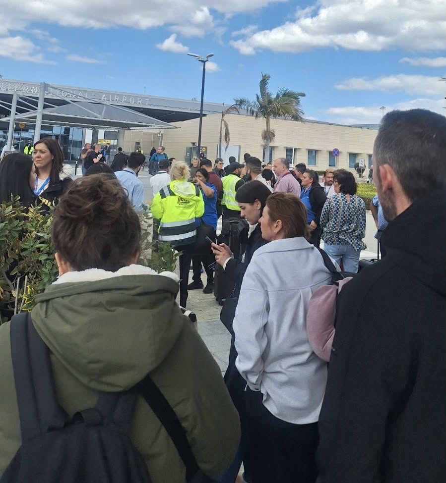 Το προσωπικό των διαφόρων υπηρεσιών και τμημάτων του διεθνούς αεροδρομίου Πάφου έχει ήδη βγει από τα κτήρια και είναι συγκεντρωμένο στους χώρους στάθμευσης του αεροδρομίου εν αναμονή περαιτέρω οδηγιών. Παράλληλα, στους υπαίθριους χώρους βρίσκονται και εκατοντάδες επιβάτες πτήσεων που θα αναχωρήσουν από την Πάφο τις επόμενες ώρες και είχαν ήδη μεταβεί στο αεροδρόμιο.
