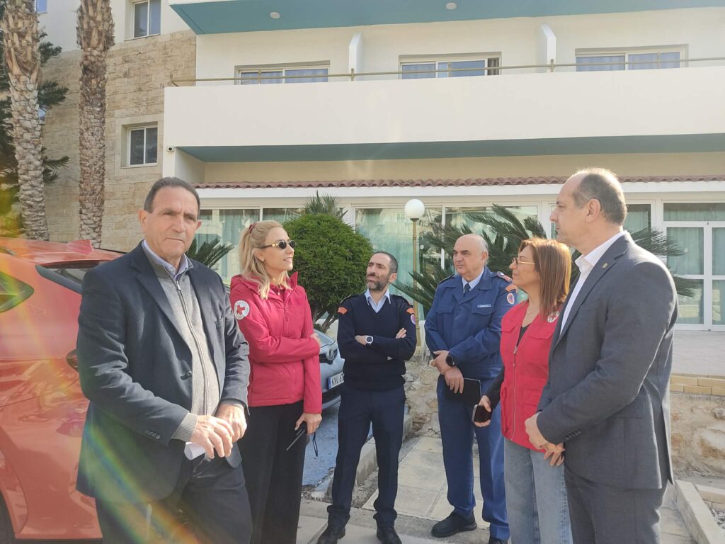 Ο επίτροπος Προεδρίας Μάριος Χαρτσιώτης επισκέπτεται το πρωί της Παρασκευής χώρους όπου φιλοξενούνται προσωρινά κάτοικοι Ακρωτηρίου.