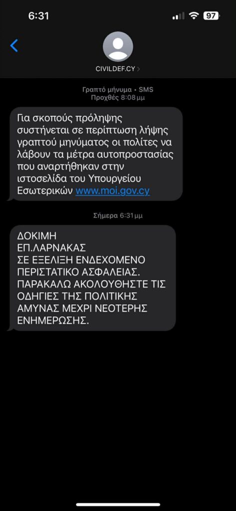 18:32 – Άρχισε η αποστολή των δοκιμαστικών μηνυμάτων στην επαρχία Λάρνακας
