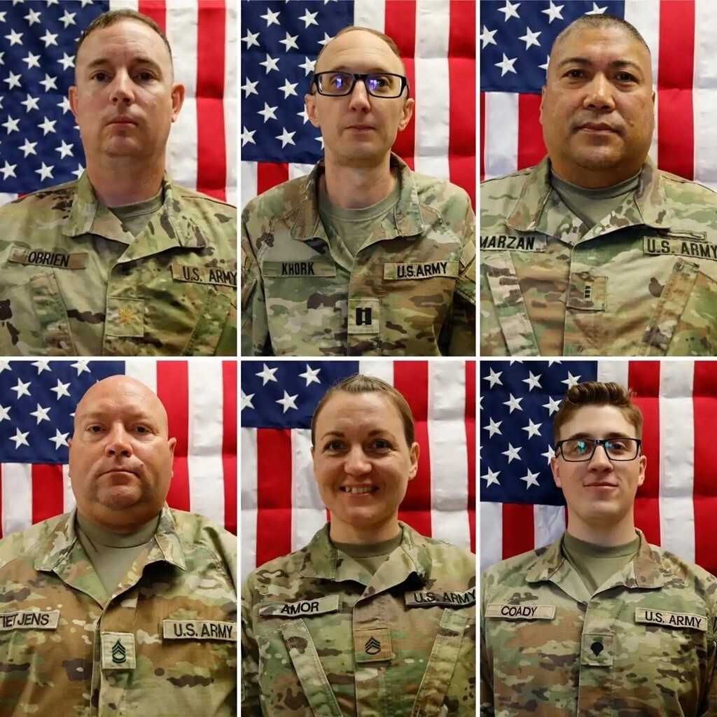 Οι έξι στρατιώτες, που απεικονίζονται παρακάτω, σκοτώθηκαν όταν ένα μη επανδρωμένο αεροσκάφος χτύπησε ένα λιμάνι στο Κουβέιτ την Κυριακή.