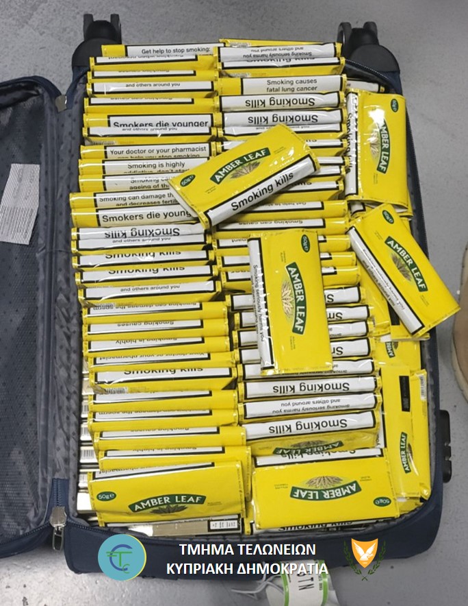 Στις 8/3/2026 λειτουργοί του Τμήματος Τελωνείων στο Αεροδρόμιο Πάφου, μετά από αξιολόγηση πληροφοριών, εντόπισαν 34χρονο Ελληνοκύπριο επιβάτη πριν την αναχώρηση του με προορισμό το Ηνωμένο Βασίλειο, με την αποσκευή του να περιέχει μεγάλη ποσότητα καπνικών προϊόντων, τα οποία δεν έφεραν τη σήμανση για το βλαβερό του καπνίσματος στην ελληνική και τουρκική γλώσσα, αλλά ούτε και το χαρακτηριστικό ασφαλείας και το μοναδικό κωδικό ιχνηλασιμότητας, ενδείξεις ότι ήταν αδασμοφορολόγητα.