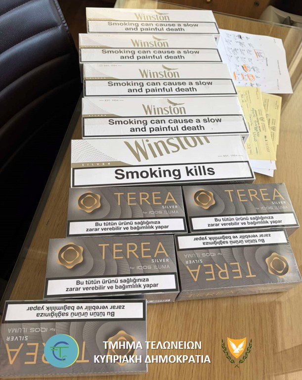 Στις 10/3/2026, κατά τις πρώτες πρωινές ώρες, λειτουργοί του Τμήματος Τελωνείων στο σημείο διέλευσης Αγίου Δομετίου, πραγματοποίησαν έλεγχο σε όχημα που οδηγούσε άνδρας με Ελληνοκυπριακή υπηκοότητα. Κατά τον έλεγχο στο όχημα εντοπίστηκαν 1 κούτα των 200 τσιγάρων, 4 κούτες των 200 θερμαινόμενων τσιγάρων η κάθε μία και συσκευασίες στριφτού τσιγάρου συνολικού βάρους 250 γραμμαρίων, οι οποίες δεν έφεραν σημάνσεις για το βλαβερό της υγείας στην Ελληνική και Τούρκικη γλώσσα, ένδειξη ότι είναι αδασμοφορολόγητα. Αφού έγινε αποδεκτή η πρόταση του για εξώδικο συμβιβασμό των αδικημάτων, με την καταβολή συνολικού ποσού €300 ευρώ αφέθηκε ελεύθερος.