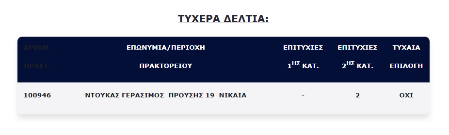 Επίσης, δύο (2) τυχερά δελτία βρέθηκαν στη 2η κατηγορία (5), τα οποία κερδίζουν το ποσό των €100.000,00 για κάθε επιτυχία.