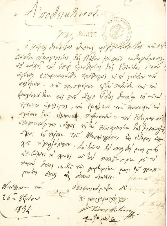 «Νομίζομεν ενώπιον Θεού και ανθρώπων ότι έχομεν κάθε δίκαιον να μη γνωρίζωμεν πλέov διά διoίκησιv τoυς αιµoβόρoυς τoύτoυς λῃστάς (τους Τούρκους), αλλά συμφώνως µε τους λοιπούς αδελφούς ημών Έλληνας θέλομεν προσπαθήσει την Ελευθερίαν της ειρηνικής ημών, πάλαι μεν Μακαρίας, ήδη δε τρισαθλίας Νήσου Κύπρου», τόνισαν, μεταξύ άλλων, οι 18 υπογράφοντες κληρικοί και λαϊκοί, στη γνωστή, πια, διακήρυξη της 6ης Δεκεμβρίου 1821, εξουσιοδοτώντας τον Νικόλαο για δράση υπέρ της ελευθερίας της ιδιαίτερης πατρίδας.