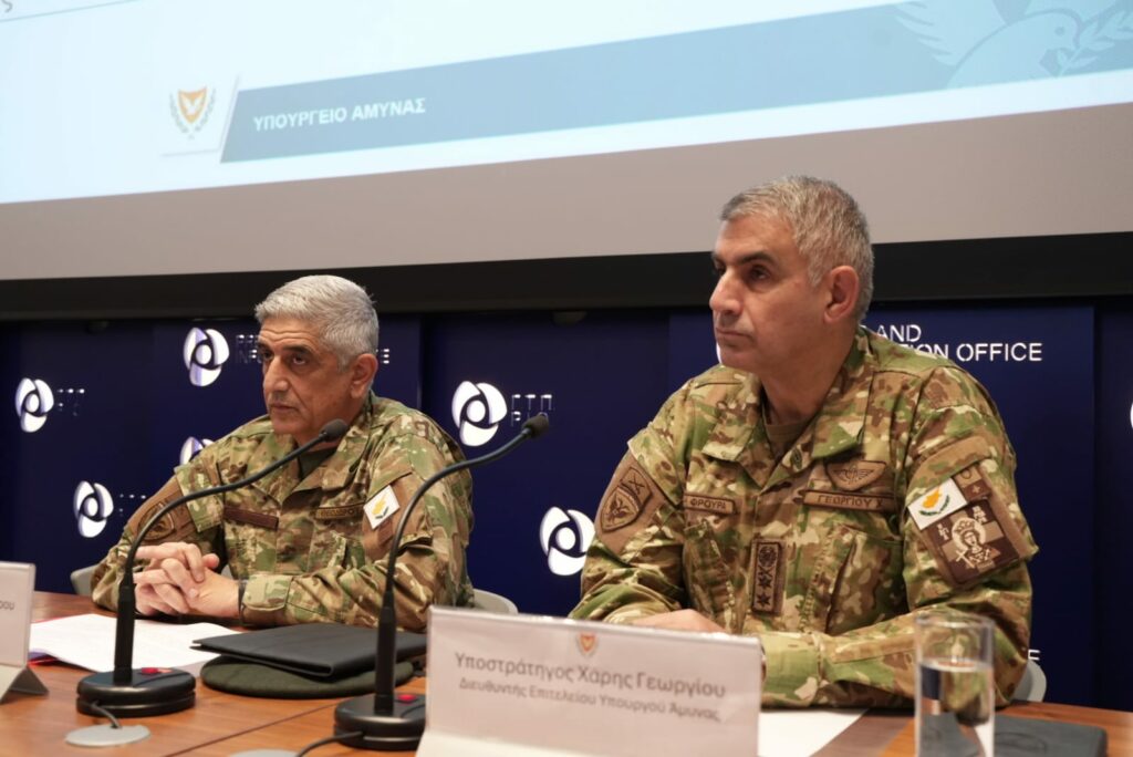 Η δημοσιογραφική διάσκεψη διεξήχθη με τη συμμετοχή του Αρχηγού του Γενικού Επιτελείου της Εθνικής Φρουράς Αντιστράτηγου Εμμανουήλ Θεοδώρου και του Αναπληρωτή Γενικού Διευθυντή του Υπουργείου Άμυνας κ. Στέλιος Κουντούρης.