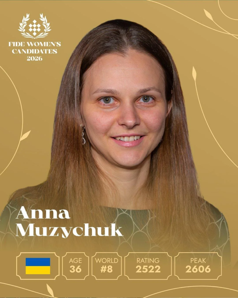 Η Μουζιτσούκ θα συμμετάσχει σε ένα σύνολο παικτριών που περιλαμβάνει τις Ταν Τζονγκγί, Κατερίνα Λάγκνο, Αλεξάνδρα Γκοριατσίκινα, Ζου Τζίνερ, Ντίβια Ντεσμούκ, Βαϊσάλι Ραμεσμπάμπου και Μπιμπισάρα Ασαουμπάγιεβα.