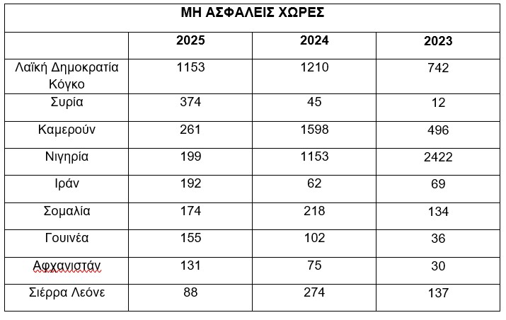 Το 2025, οι αιτητές από μη ασφαλείς χώρες αυξήθηκαν: