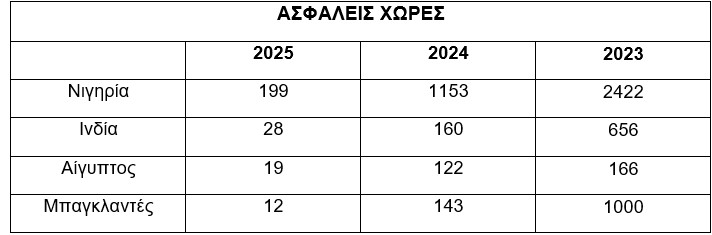 Το 2025, οι αιτητές από ασφαλείς χώρες μειώθηκαν: