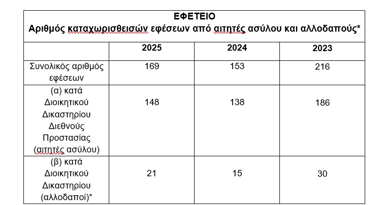 - Το 2025, καταχωρίσθηκαν συνολικά 169 εφέσεις από αιτητές ασύλου και αλλοδαπούς*