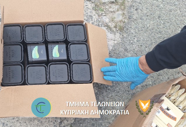 Κατά την μετάβαση των λειτουργών του Τμήματος Τελωνείων στο Αρχηγείο Αστυνομίας, όπου μεταφέρθηκε το όχημα για την διεξαγωγή των αστυνομικών εξετάσεων, διαπιστώθηκε ότι στα χαρτοκιβώτια περιέχονταν διάφορα καπνικά προϊόντα οι συσκευασίες των οποίων δεν έφεραν σημάνσεις για το βλαβερό της υγείας στην Ελληνική και Τούρκικη γλώσσα, ένδειξη ότι είναι αδασμοφορολόγητα. Στη συνέχεια καταμετρήθηκαν και κατασχέθηκαν: