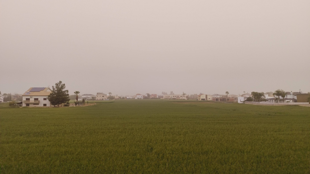 Ενημερωτικά, οι τελευταίες ωριαίες τιμές συγκέντρωσης σκόνης που μετρήθηκαν στις 07:00 π.μ. στις ακόλουθες περιοχές ήταν στη Λευκωσία 1167,7 μg/m3, στη Λεμεσό 161,8 μg/m3, στη Λάρνακα 481,3 μg/m3, στο Παραλίμνι 326,4 μg/m3, στην Πάφο 793,8 μg/m3, στο Ζύγι 191,8 μg/m3 και στην Αγία Μαρίνα Ξυλιάτου 2047,0 μg/m3.