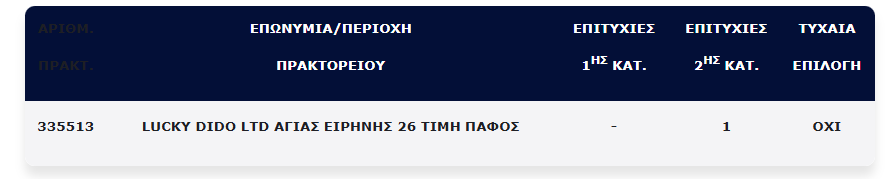 Επίσης, ένα (1) τυχερό δελτίο βρέθηκε στη 2η κατηγορία (5), το οποίο κερδίζει το ποσό των €100.000,00.