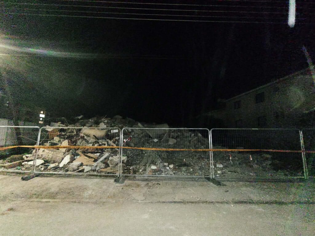 Την Κυριακή του Πάσχα τα συνεργεία προχώρησαν στην πλήρη κατεδάφιση της πολυκατοικίας, καθώς η υπόλοιπη οικοδομή ήταν άκρως επικίνδυνη. Η πολυκατοικία είχε κυριολεκτικά «κοπεί στη μέση», με τη νότια πλευρά της να είχε πάρει επικίνδυνη κλίση, αφού οι κολώνες στον ισόγειο χώρο στάθμευσης υποχώρησαν.