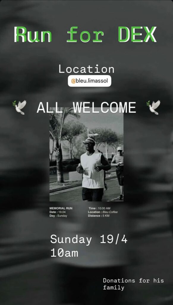 «Μετακόμισε στην Κύπρο για να βγάλει τα προς το ζην. Για να στηρίξει τη μητέρα και την οικογένειά του. Κάποιοι άνθρωποι φέρνουν φως όπου κι αν πηγαίνουν. Ο Dex ήταν ένας από αυτούς. Ήταν δίπλα στους φίλους του, στην οικογένειά του, σε αυτή την κοινότητα. Ήταν ένας από εμάς. Πάντα σε κίνηση. Έφυγε πολύ νωρίς. Δεν θα ξεχαστεί ποτέ. Στη μνήμη του, τρέχουμε».