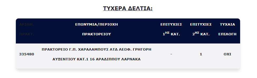 Επίσης, ένα (1) τυχερό δελτίο βρέθηκε στη 2η κατηγορία (5), το οποίο κερδίζει το ποσό των €100.000,00.