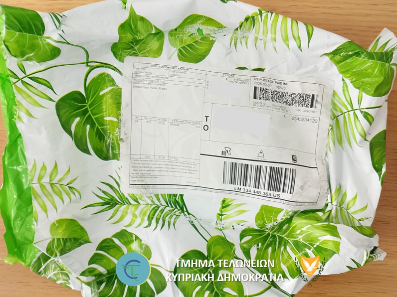 Στις 15/4/2026 λειτουργοί του Τμήματος Τελωνείων, οι οποίοι είναι τοποθετημένοι στο Κέντρο Διαλογής Αλληλογραφίας (ΚΕ.Δ.Α.) στα Λατσιά, διενήργησαν έλεγχο σε ύποτπο δέμα με προέλευση τις Η.Π.Α. και παραλήπτη 23χρονο Ελληνοκύπριο, ο οποίος συνελήφθηκε πριν ένα περίπου μήνα για παραλαβή άλλου δέματος, το οποίο περιείχε κάνναβη. Κατά τον φυσικό έλεγχο του νέου δέματος, το οποίο δηλώθηκε να περιέχει πλαστικές μπάλες εξάσκησης γκολφ, διαπιστώθηκε να περιέχει ένα χάρτινο κύλινδρο κλειστό αεροστεγώς με δύο νάιλον σακούλια, εντός του οποίου βρέθηκαν 376γρ. πράσινης ξηρής φυτικής ύλης (κάνναβη).