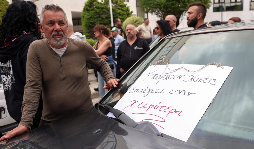 Οι κτηνοτρόφοι, κρατώντας πανό και φωνάζοντας συνθήματα, συγκεντρώθηκαν στο ΓΣΠ και στη συνέχεια πορεύτηκαν προς το Υπουργείο Γεωργίας.