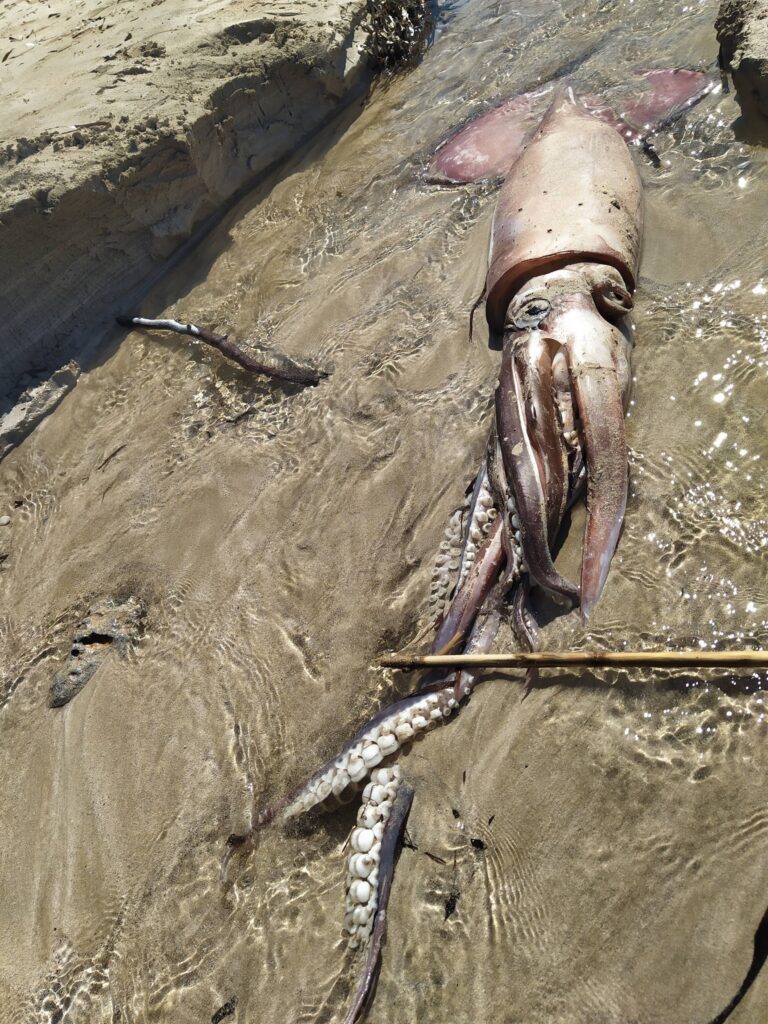 Ένα γιγάντιο καλαμάρι εντοπίστηκε νεκρό σε παραλία της Πάφου, κοντά στον φάρο, προκαλώντας εντύπωση σε πολίτη που βρισκόταν στην περιοχή.